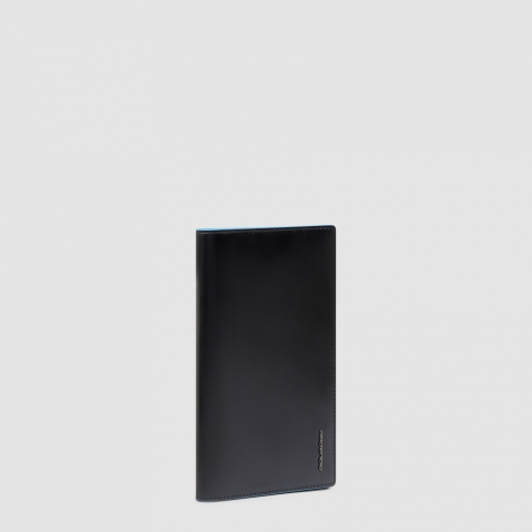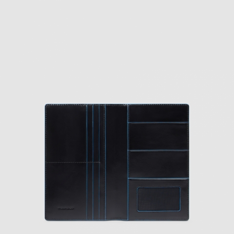 Новая модель вертикального портмоне для документов из коллекции Piquadro Blue Square. Изготовлено из премиальной теляьчьей кожи с фирменным синим кантом. Портмоне имеет отделения для 6 банковских карт, карманы для СТС, водительских прав и паспорта. Поставляется в фирменной подарочной коробке.