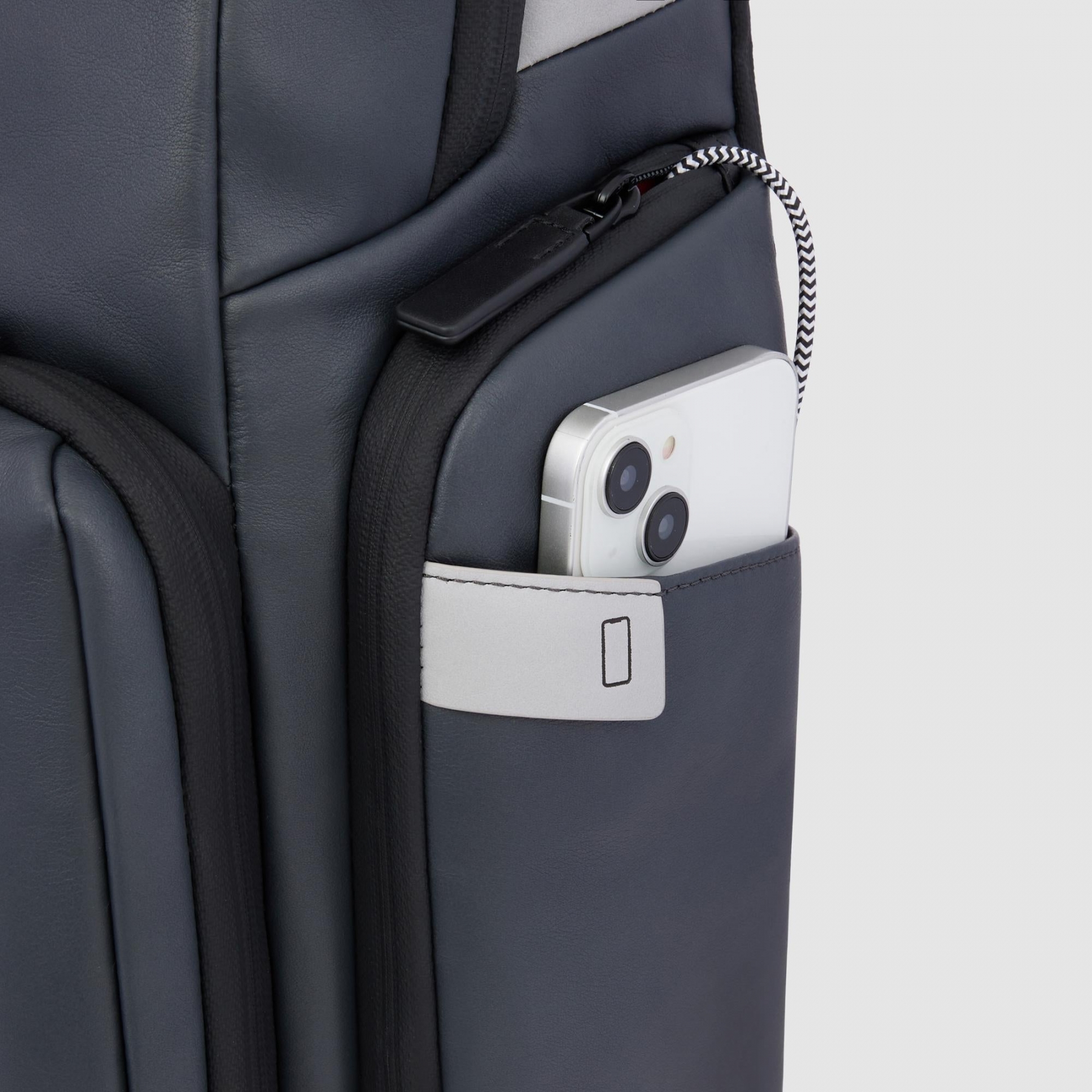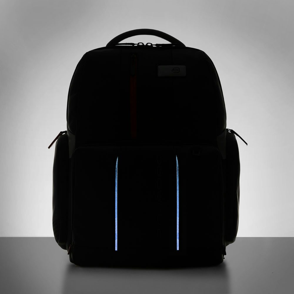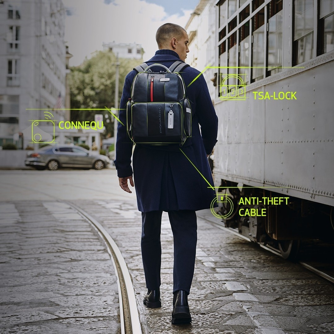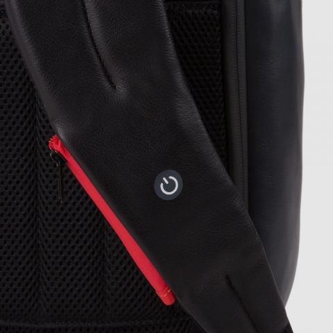 Кожаный бизнес-рюкзак из коллекции Piquadro Urban. Рюкзак изготовлен из мягкой телячьей кожи с использованием черненой металлической фурнитуры. Это флагманская модель рюкзака, здесь реализованы такие "фишки", как: подсветка, кодовый замок на одном из отделений, датчик CONNEQU для отслеживания местоположения рюкзака, RFID защита, позволяющая избежать снятия денежных средств бесконтактным способом, "антиворовской" шнур, с помощью которого можно пристегнуть рюкзак и не беспокоится, что его своруют, USB выходы для зарядки Ваших гаджетов, а также крепеж на чемодан, крючок для очков и брелок с контактной информацией. Рюкзак имеет два отделения в одном из которых расположен отсек для 15,6 дюймового ноутбука и планшета, а боковые карманы предназначены для небольшой бутылки и зонтика. Идеальный вариант, как для работы на каждый день, так и для поездок. Вес: 1454 гр. Новинка 2019 г.