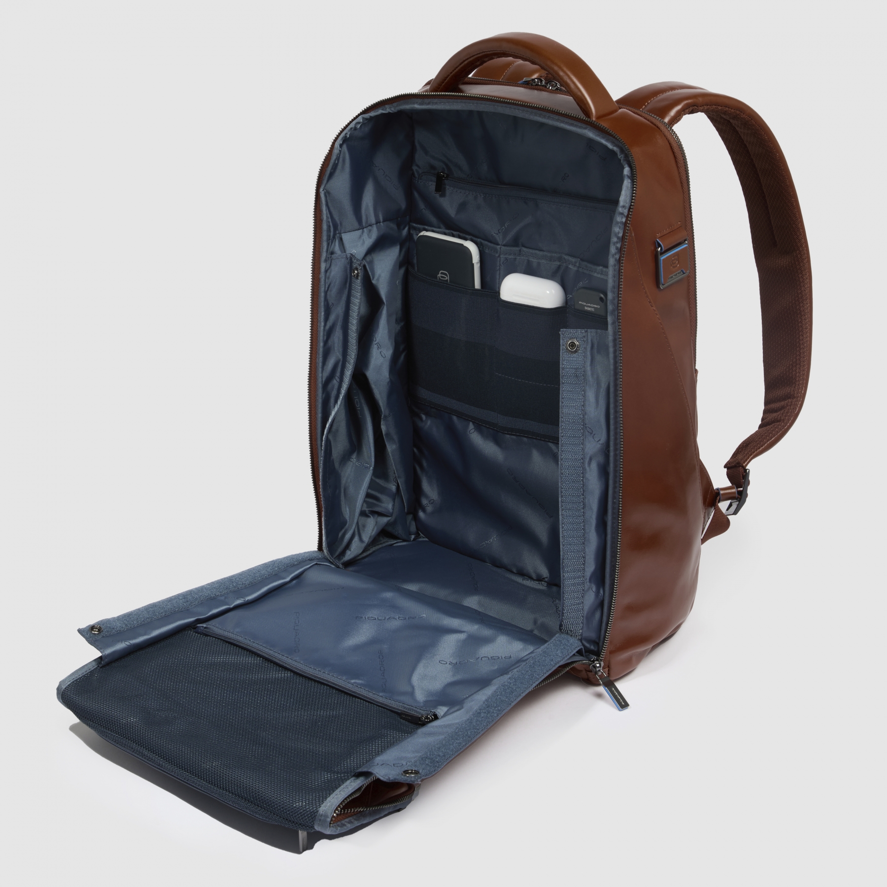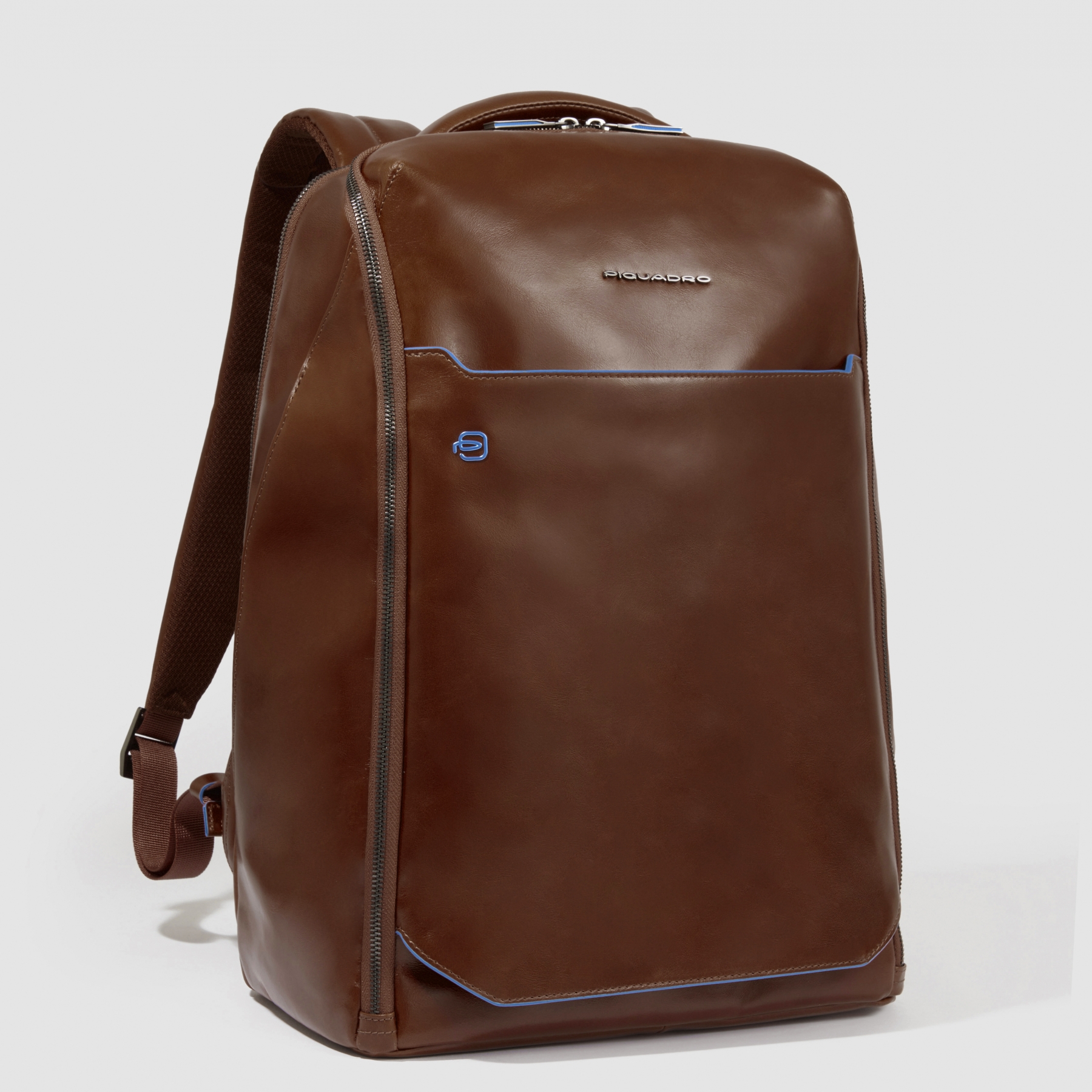 Стильный кожаный рюкзак из коллекции Piquadro Blue Square. Рюкзак изготовлен из премиальной гладкой телячьей кожи с фирменным голубым кантом. Имеет два больших отделения, одно из которых с отсеком для 15,6 дюймового ноутбука и планшета. Также в рюкзаке предусмотрены скрытые карманы с Rfid защитой, система крепления на дорожный чемодан и антивороской шнур. Новая модель рюкзака в самой популярной коллекции от компании Piquadro, отлично подойдёт, как на каждый день, так и для командировок.