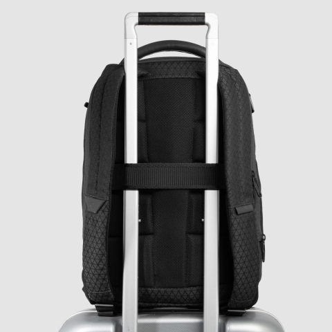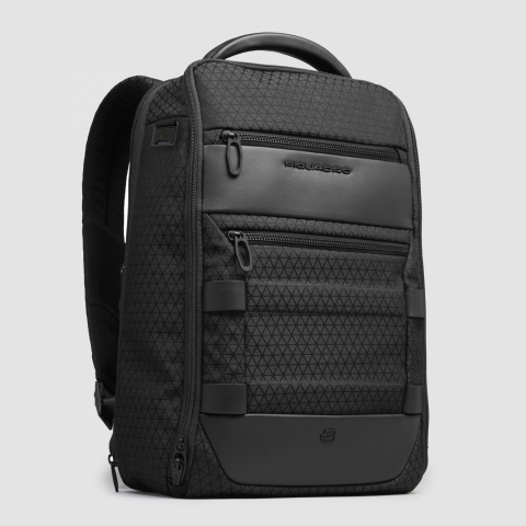 Рюкзак для поездок и путешествий из сезонной коллекции Piquadro HEXAGON. Изготовлен из высокотехнологичной и высокопрочной ткани, 91% полиэстер, 8 полиуретан, имеющей также влагоотталкивающие свойства. Материал запатентован, каждый треугольник имеет разный рисунок стяжка, что создает уникальный внешний вид. Рюкзак имеет отделение для планшета и 14 дюймового ноутбука, кармашки для письменных принадлежностей. На задней части карман на молнии с RFID защитой для портмоне и крепление на чемодан. Молнии с защитой от открытия. Рюкзак также имеет возможность увеличения внутреннего объема.