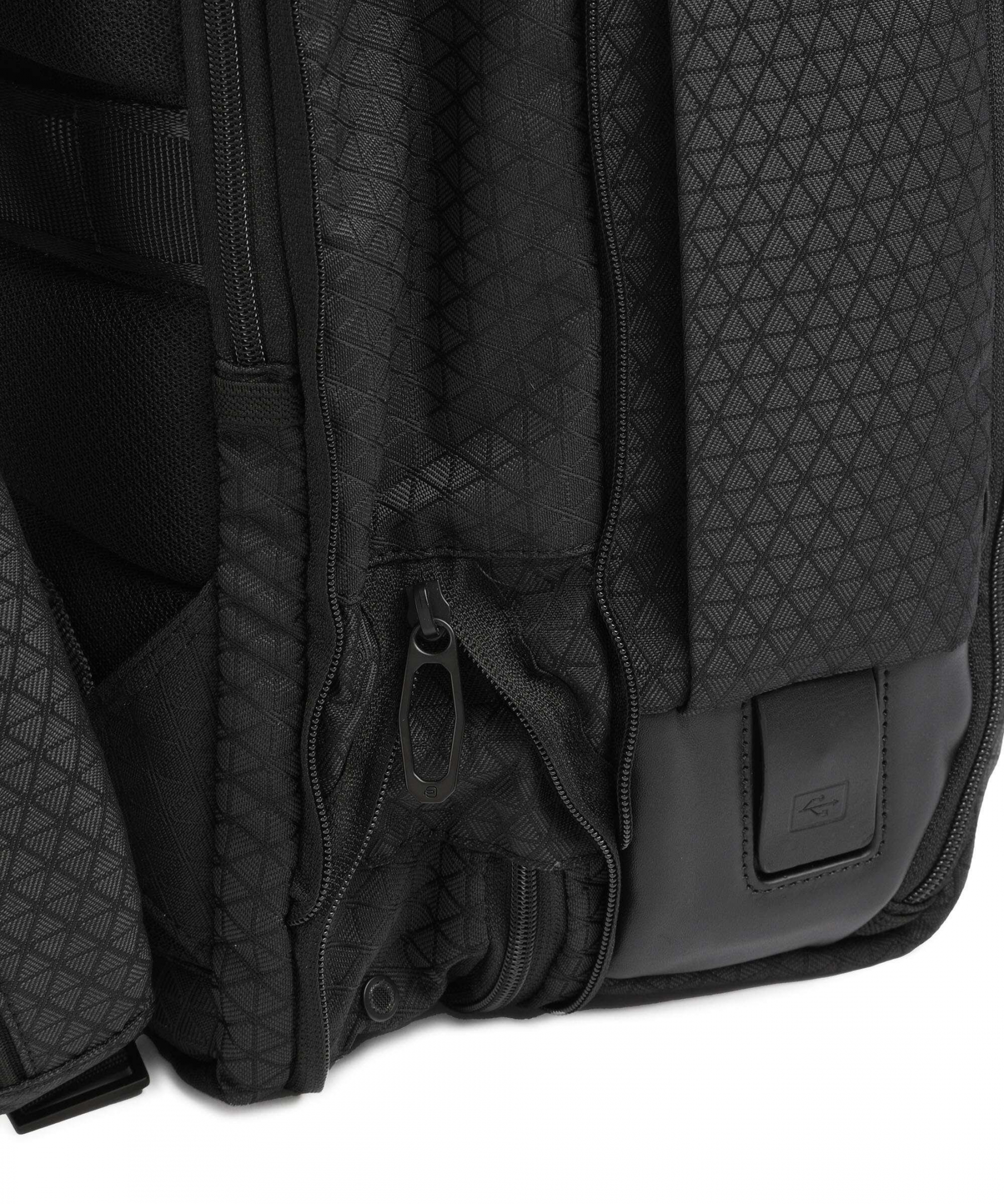 Стильный рюкзак для поездок и путешествий из сезонной коллекции Piquadro HEXAGON. Изготовлен из высокотехнологичной и высокопрочной ткани, 91% полиэстер, 8 полиуретан, имеющей также влагоотталкивающие свойства. Материал запатентован, каждый треугольник имеет разный рисунок стяжка, что создает уникальный внешний вид. Рюкзак имеет отделение для планшета и 15,6 дюймового ноутбука, кармашки для письменных принадлежностей. Другое отделение с натяжными ремнями для вещей и со съемным органайзером для вещей и аксессуаров. На задней части карман на молнии с RFID защитой для портмоне и крепление на чемодан. Молнии с защитой от открытия. Рюкзак также имеет возможность увеличения внутреннего объема. Объем: 31 л.