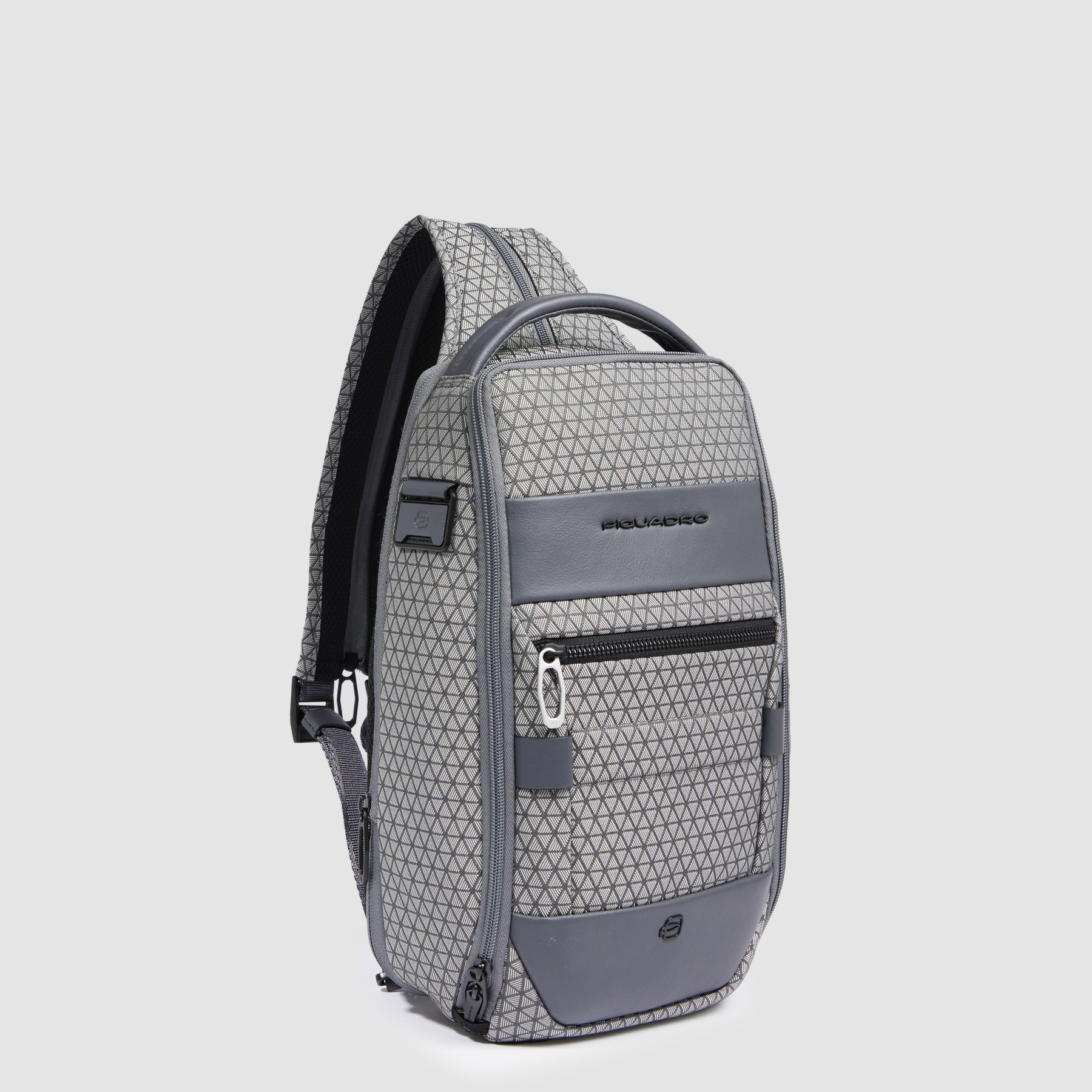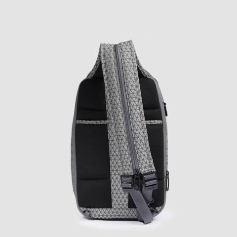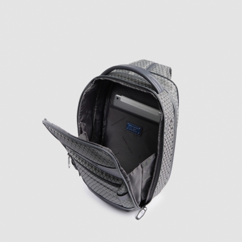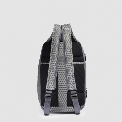 Рюкзак с одной лямкой из сезонной коллекции Piquadro HEXAGON. Изготовлен из высокотехнологичной и высокопрочной ткани, 91% полиэстер, 8 полиуретан, имеющей также влагоотталкивающие свойства. Материал запатентован, каждый треугольник имеет разный рисунок стяжка, что создает уникальный внешний вид. Рюзкак имеет отделение для планшета Porta iPad® 10,2''Air 10,9''Pro 11'' и письменных принадлежностей, карман для портмоне с RFID защитой, сдвоенную лямку, молнии с защитой от открытия и возможность увеличения внутреннего объема.