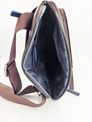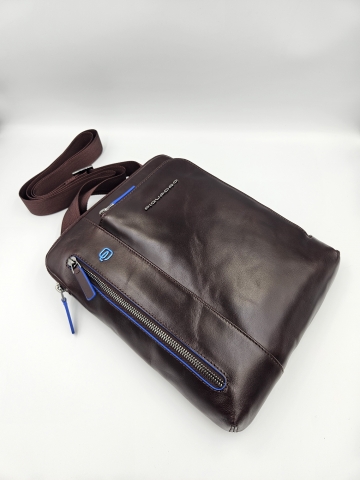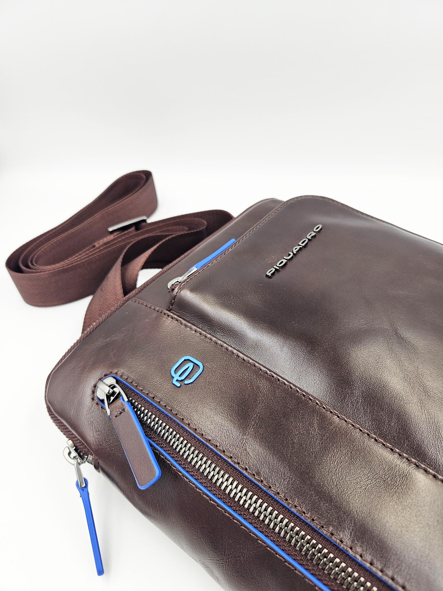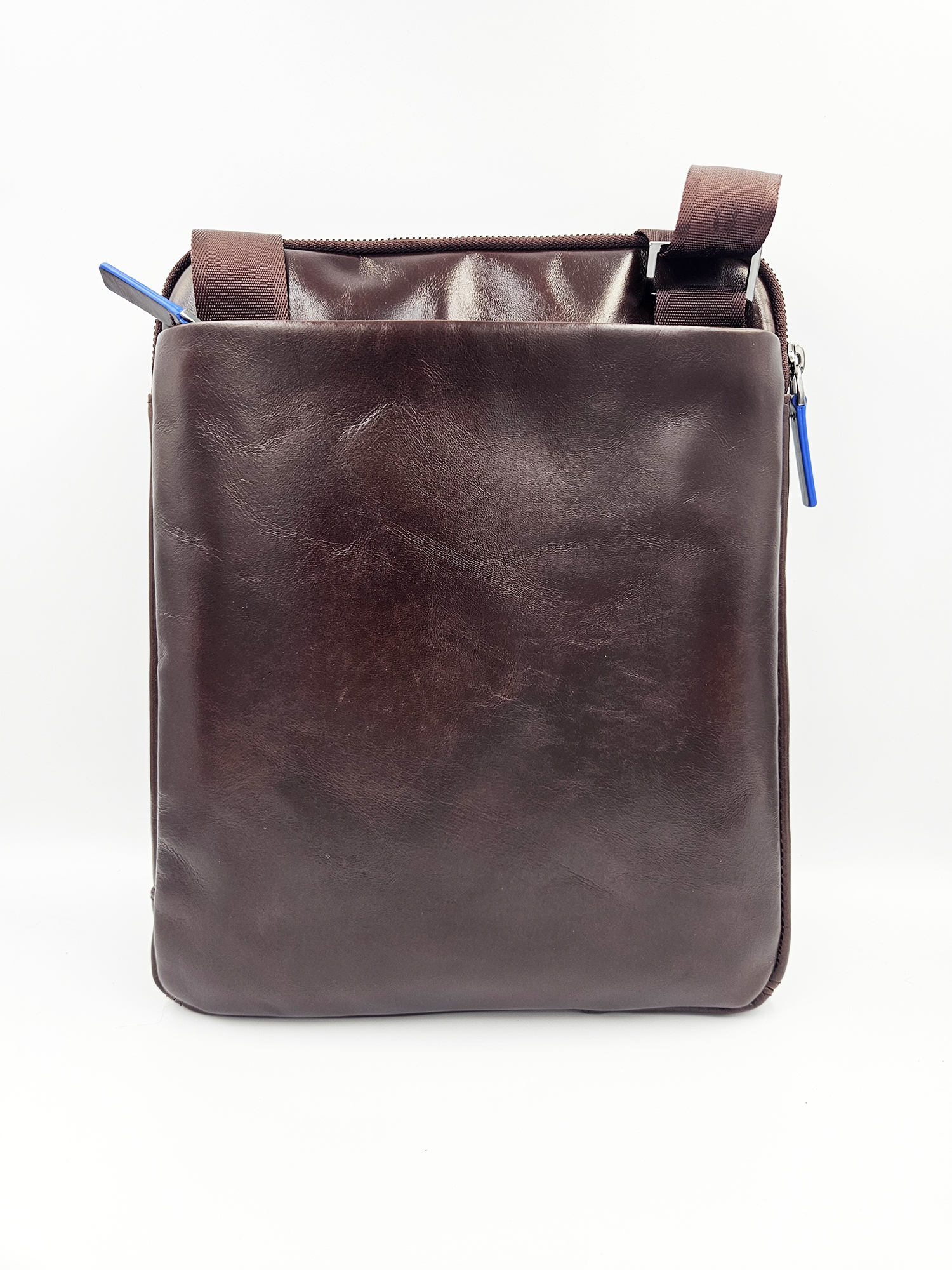 Кожаная сумка коричневого цвета с плечевым ремнем из коллекции Piquadro Blue Square. Имеет одно отделение, внутренний карман на молнии с выходом под наушники для телефона или плеера, отсек для ipad и три внешних кармана на молнии. Одна из самых популярных сумок в своем размере, благодаря функциональности и дизайну.