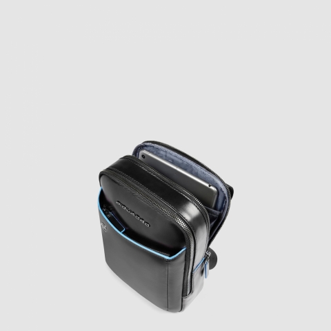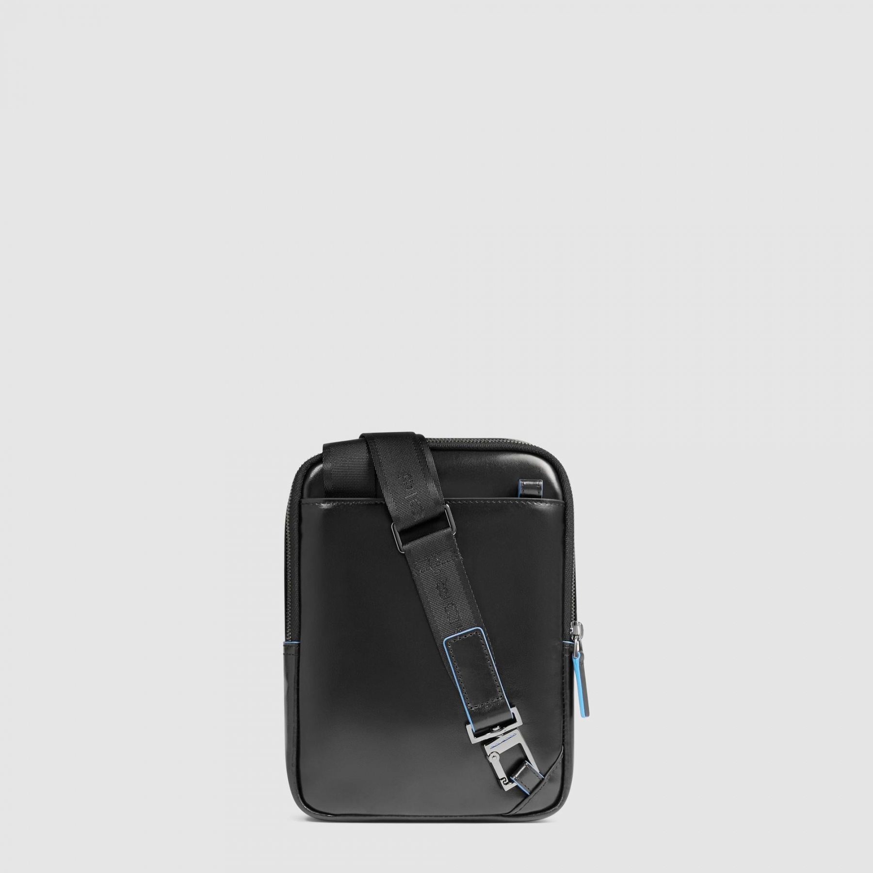 Кожаная сумка с двумя отделениями и плечевым ремнем из коллекции Piquadro Blue Square. Изготовлена из мягкой телячьей кожи премиального качества с фирменным кантом. Отличный вариант для переноски небольших вещей, таких, как паспорт, кошелек, водительские права и ключи. Новая модель.