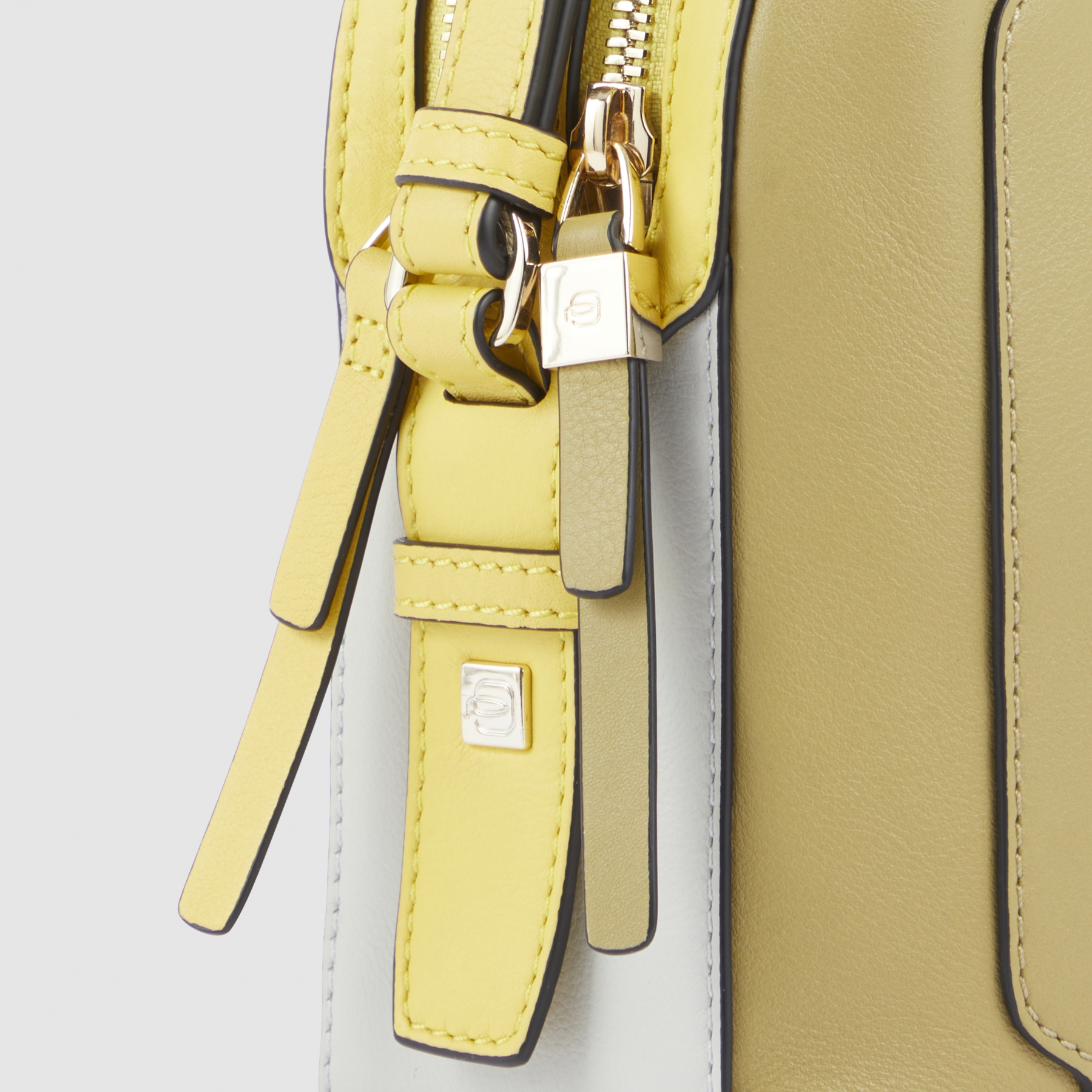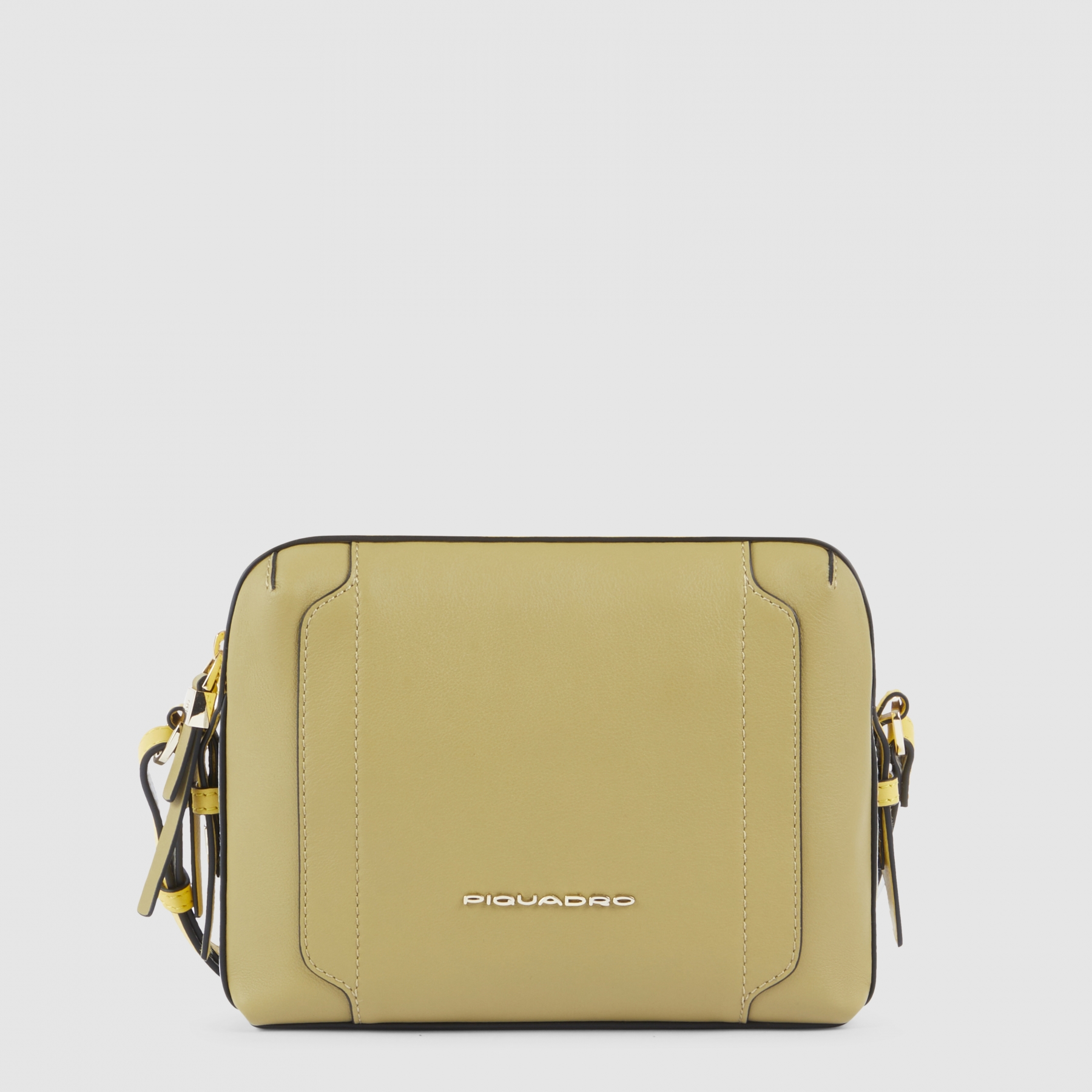 Женская кожаная сумка через плечо из коллекции Piquadro Circle. Изготовлена из высококачественной зернистой телячьей кожи с использованием надежной и стильной металлической фурнитуры золотистого цвета. Сумка имеет два отделения на молнии. Идеально подойдет на каждый день, для переноски телефона, кошелька и других небольших вещей.