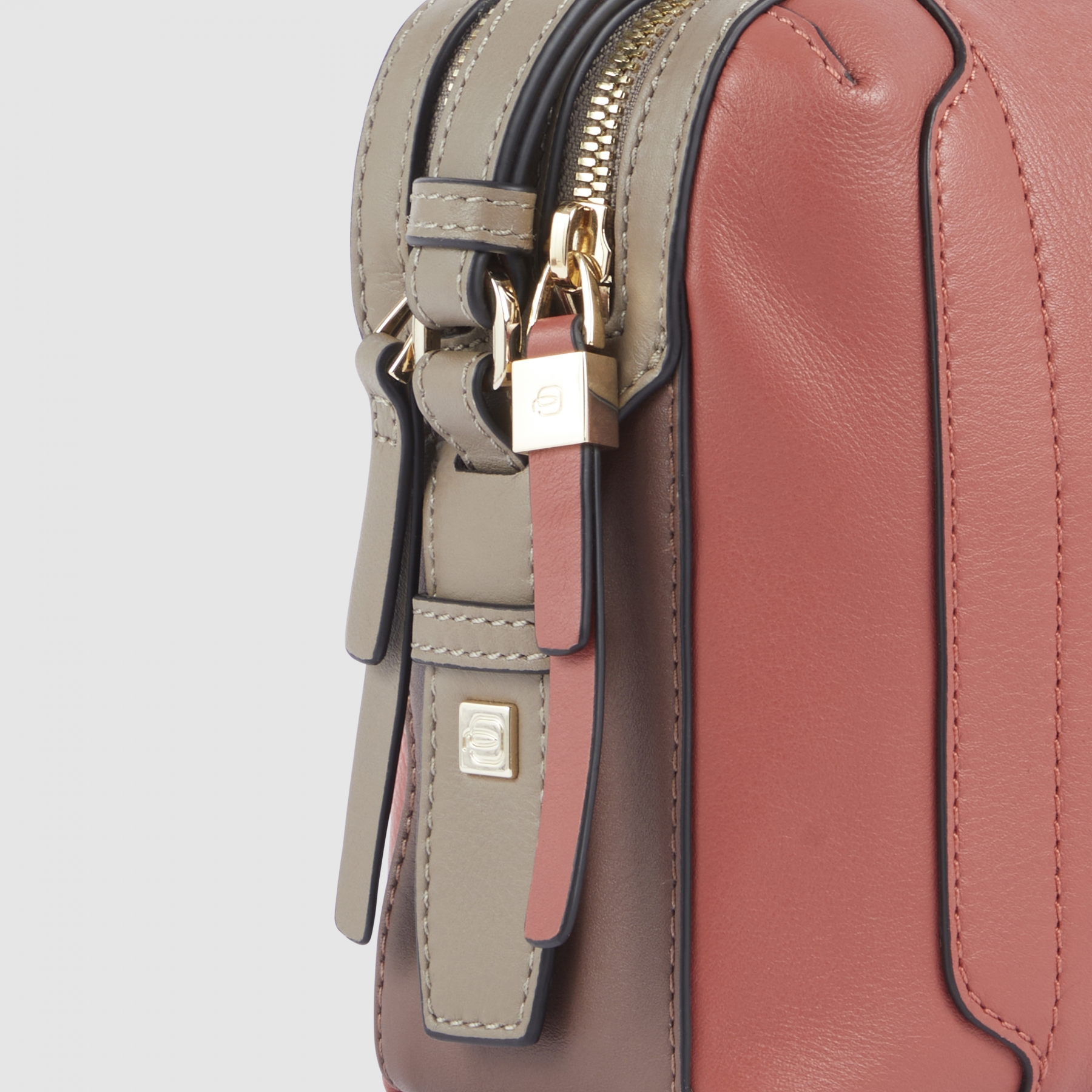Женская кожаная сумка через плечо из коллекции Piquadro Circle. Изготовлена из высококачественной зернистой телячьей кожи с использованием надежной и стильной металлической фурнитуры золотистого цвета. Сумка имеет два отделения на молнии. Идеально подойдет на каждый день, для переноски телефона, кошелька и других небольших вещей.