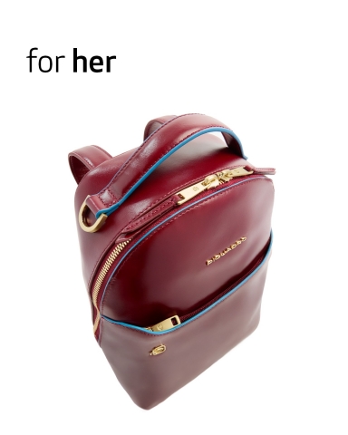 Изящный и удобный рюкзак для женщин из коллекции Piquadro Blue Square. Выполнен из мягкой и гладкой телячьей кожи. В рюкзаке одно отделение с карманами для телефона, наушников и ручек, а также внутренний карман на молнии. На передней и задней сторонах также есть карманы на молнии. На задней части присутствует крепление для ручки чемодана.Фурнитура золотистого цвета, фирменный голубой кант придаёт рюкзаку стильный вид. Вес рюкзака — 534 грамма. Новинка!